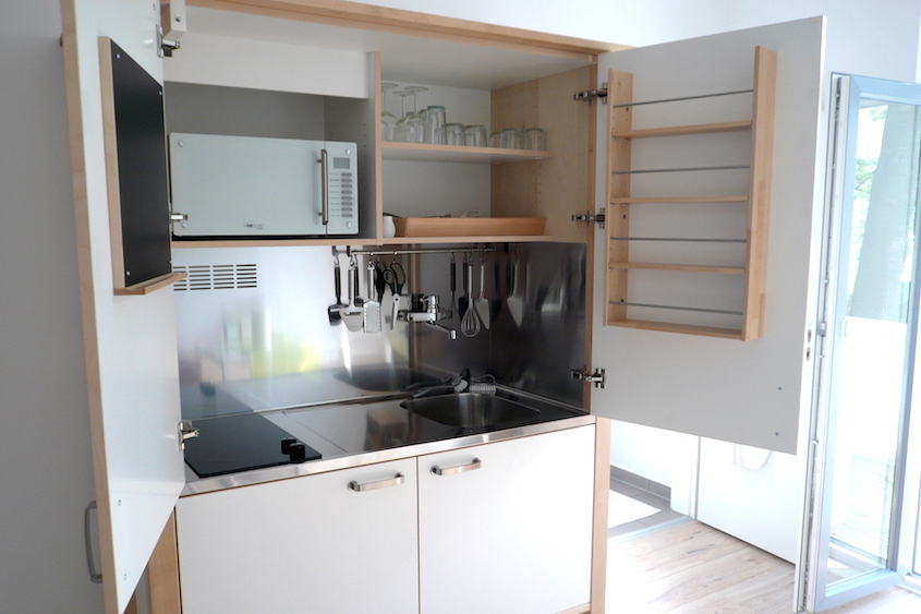 unsere kleinste Einheit, Wohnzimmer mit Schlafsofa (1,40 breit), Küche mit Zugang zum Balkon, WC und Dusche getrennt.